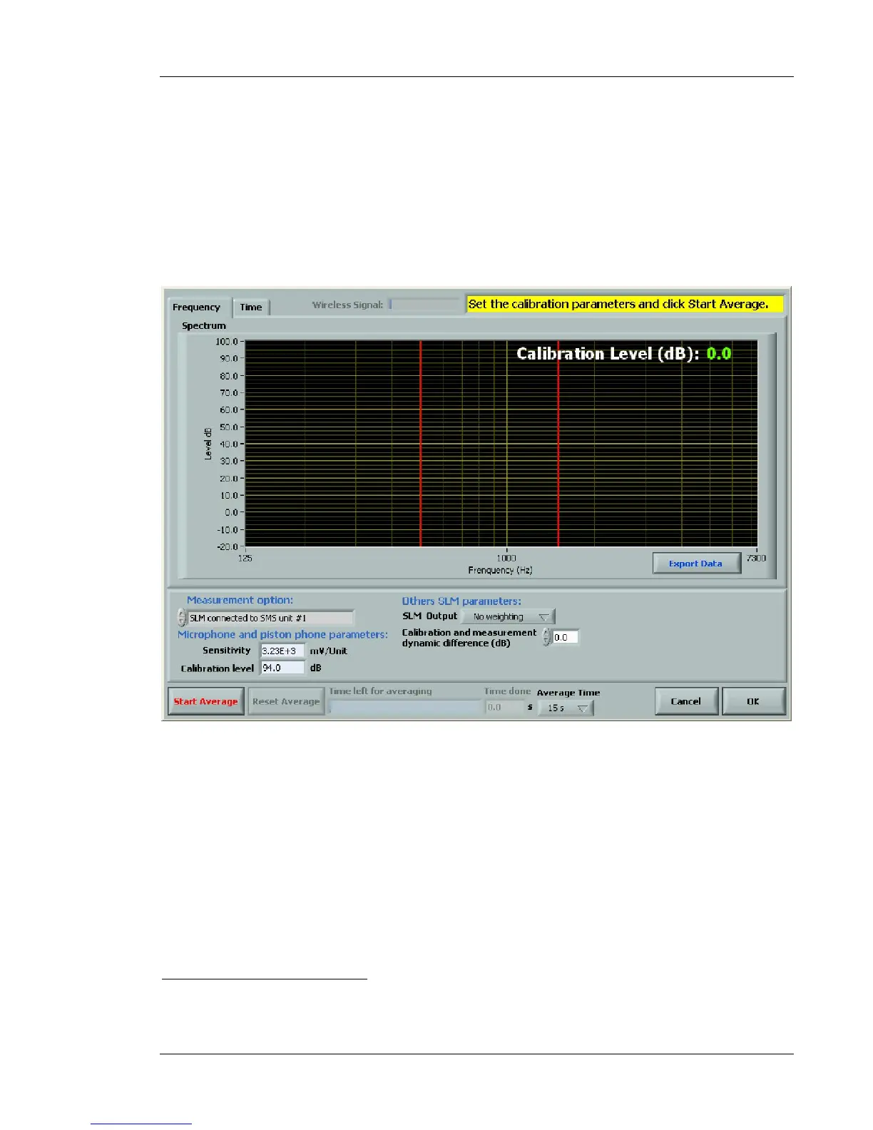 for the sensitivity adjustment is 50 to 100 dBA and the dynamic range used for the measurement is