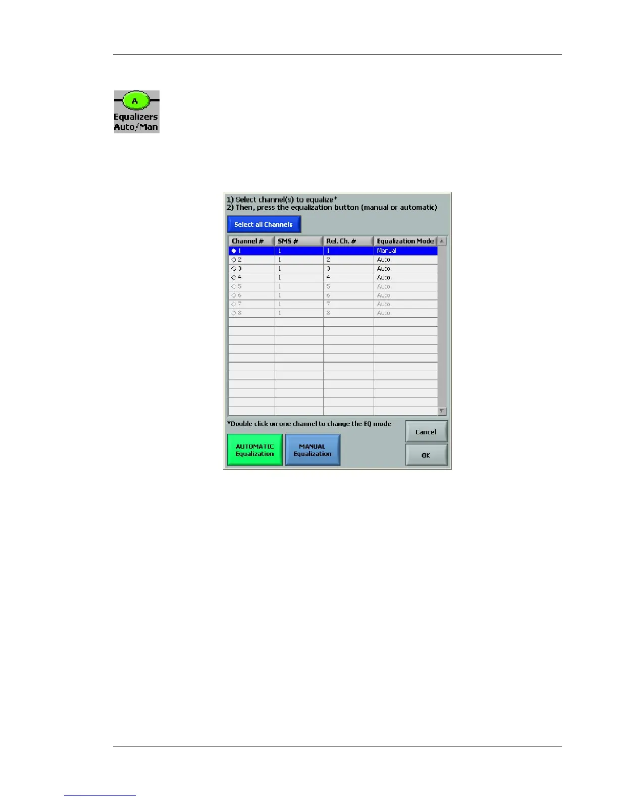 channel to change the Equalization mode between Manual and Automatic.