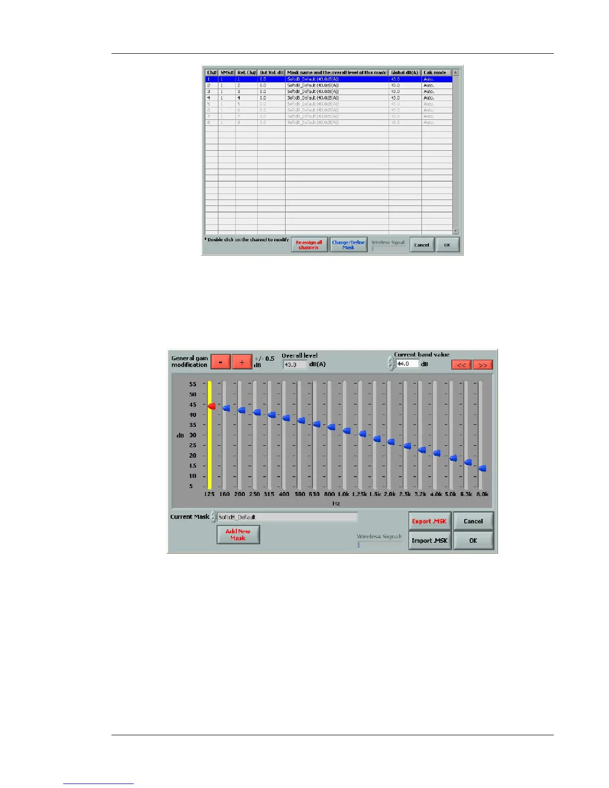 This window presents all the channels of the system, and the target masking spectrum for each of