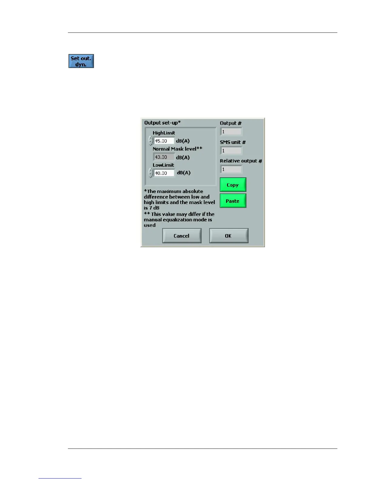 The Set Out. Dyn function (Figure 70) allows the low and high limits of the masking volume to be