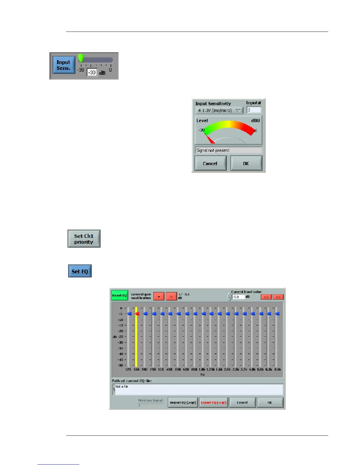 The Input Sensitivity button can be used to adjust the dynamic range of the