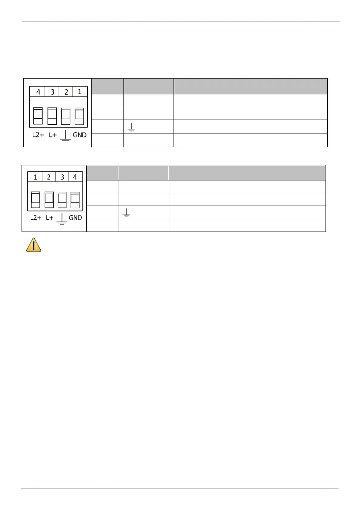 The supply voltage (18 VDC ... 32 VDC) is connected by a 4-pole terminal block. The power supply is connected to
