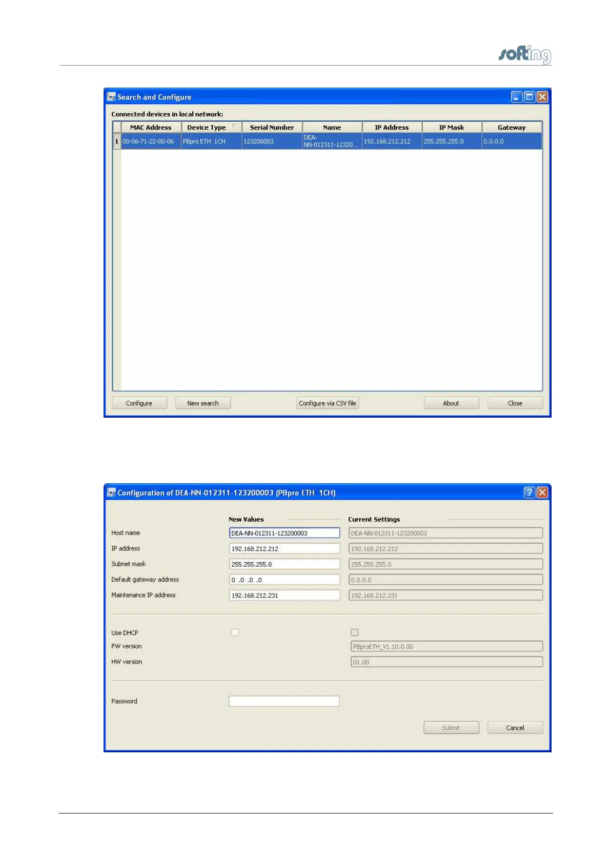 Figure 7: Search and Configure / Network parameters