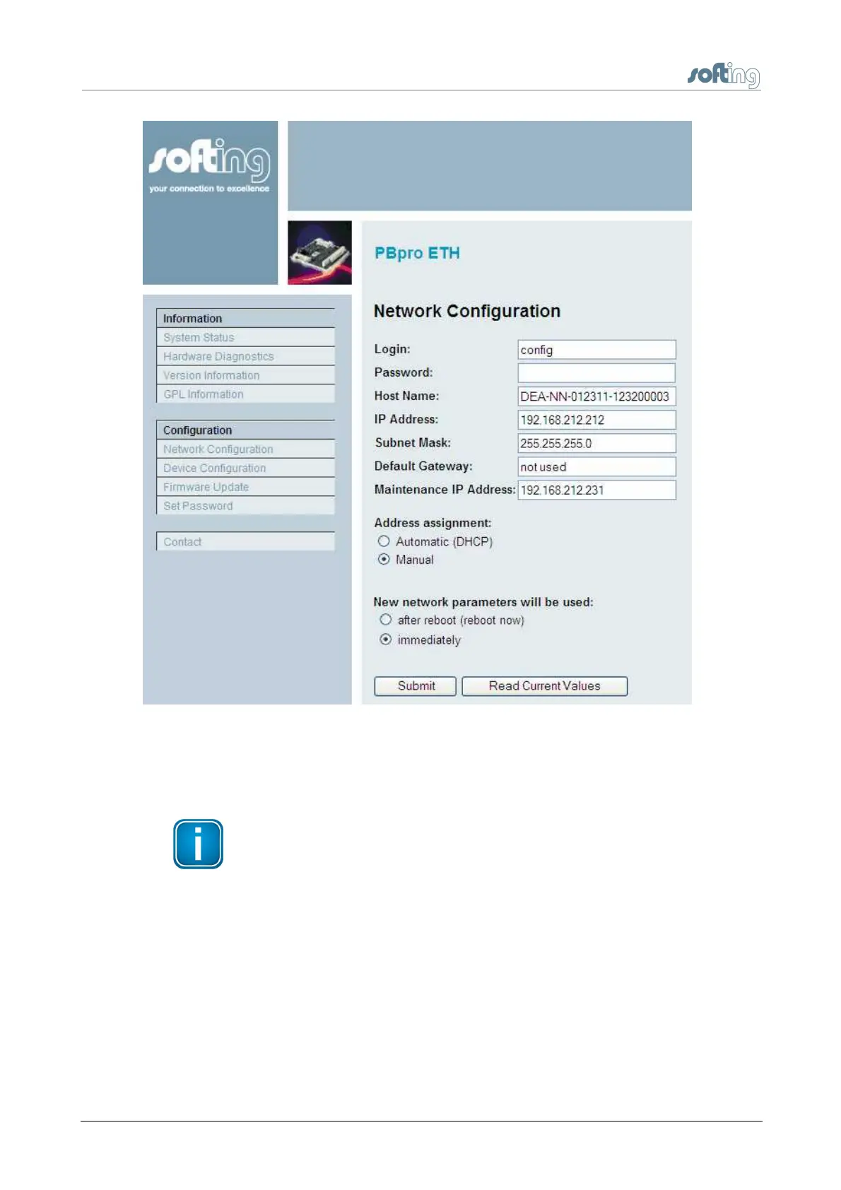 If you change the IP address of the PBpro ETH, the IP connection between