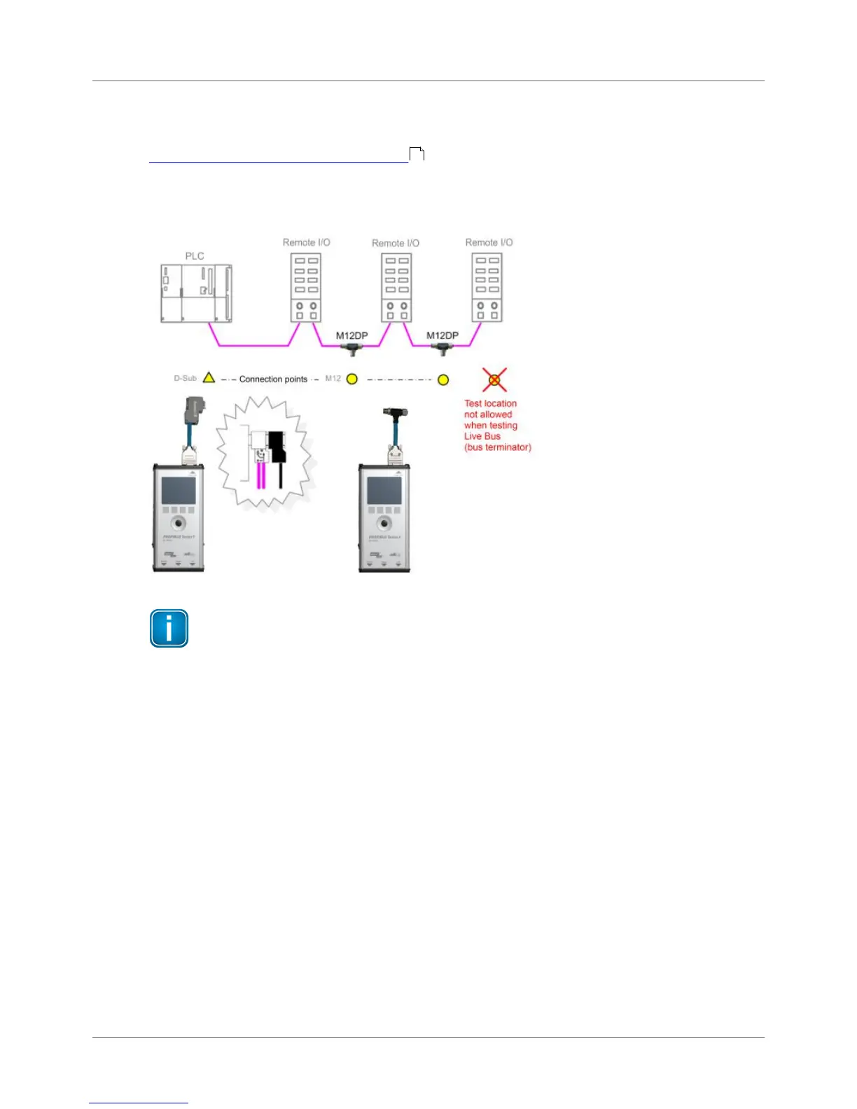 Tests on a live PROFIBUS are only allowed on bus segments providing D-sub connection technology.
