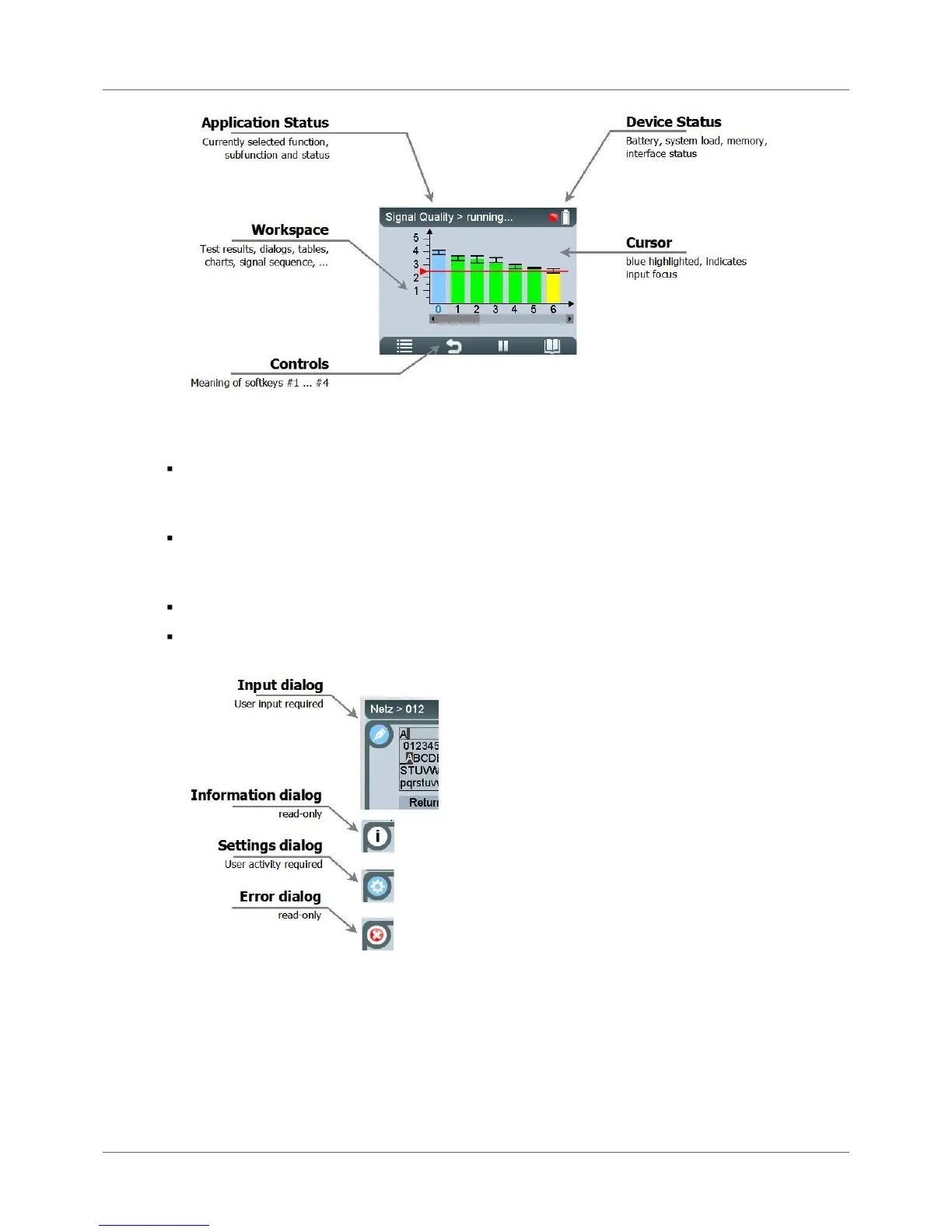 and blue indicate, which elements are selectable or changeable by means of the input focus
