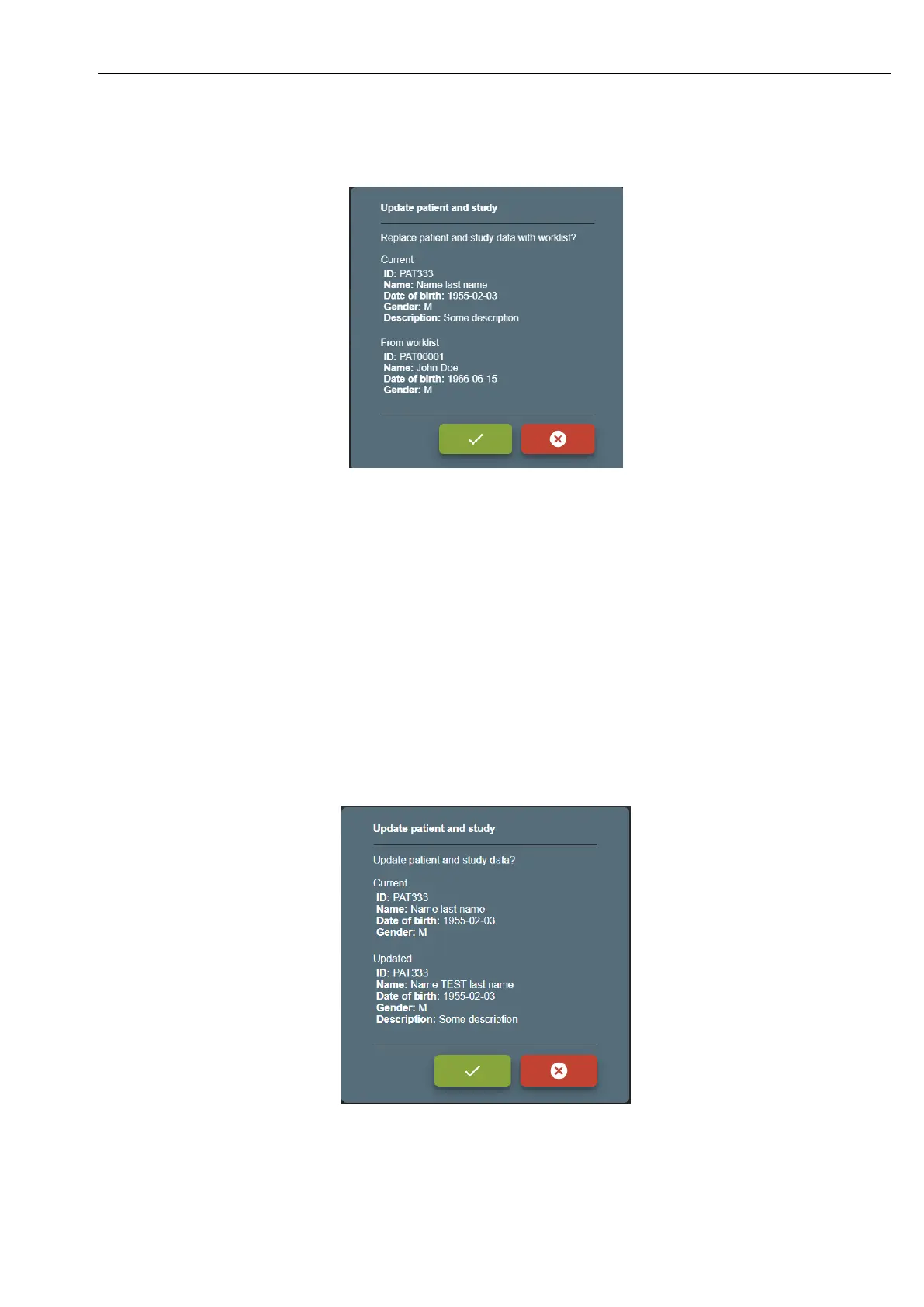 If updated patient is different patient with the same patient ID – will open confirmation window: