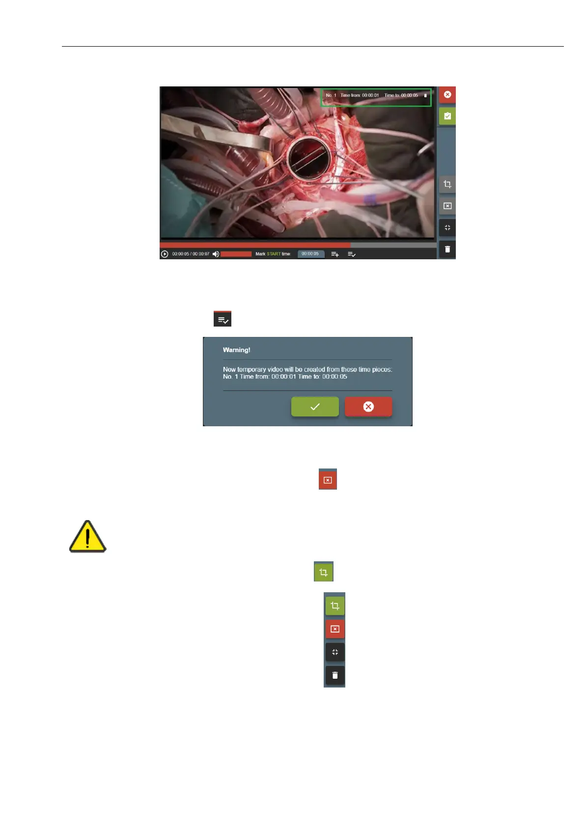 • To trim video – press button and confirm video time pieces: