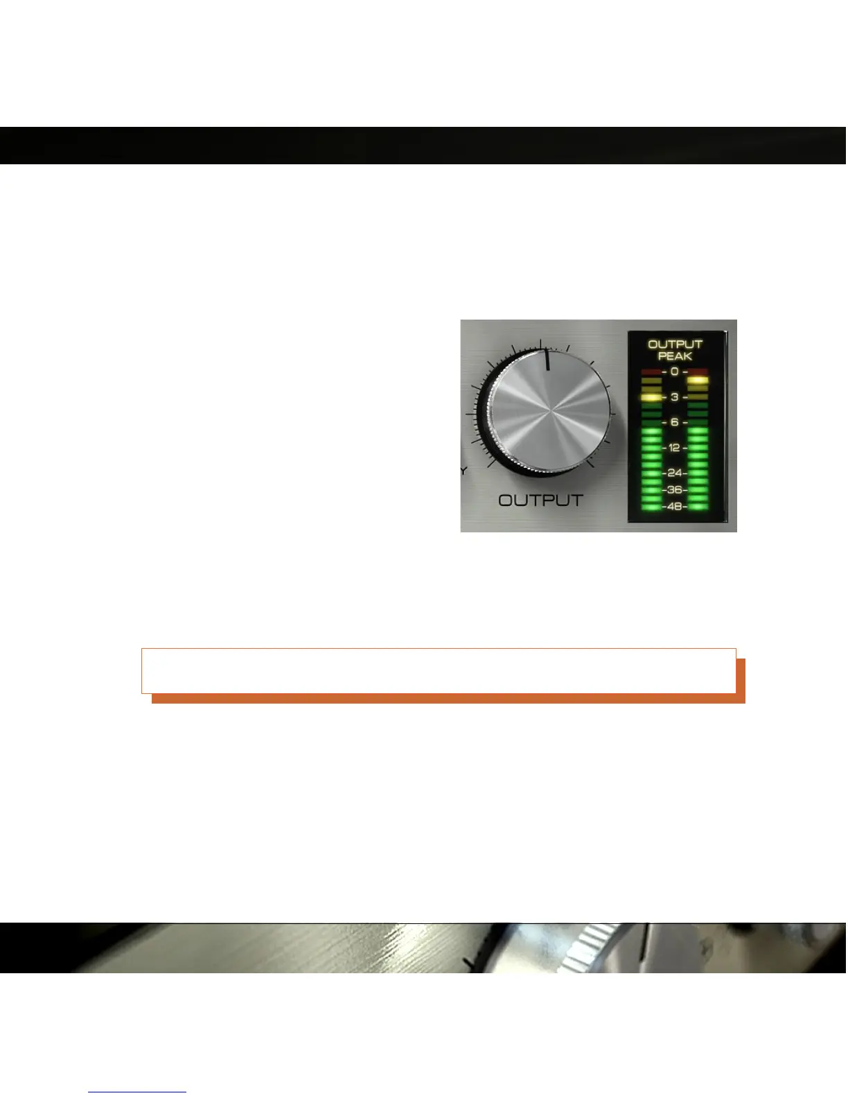 adjusting the output volume. Keep a close look on the O U T P U T P E A K meter while