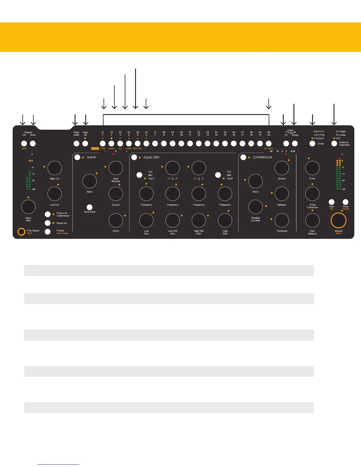 Track selector buttons Select the channel you want to adjust, of 1-20 (or 21-40, 41-60 etc, depending on