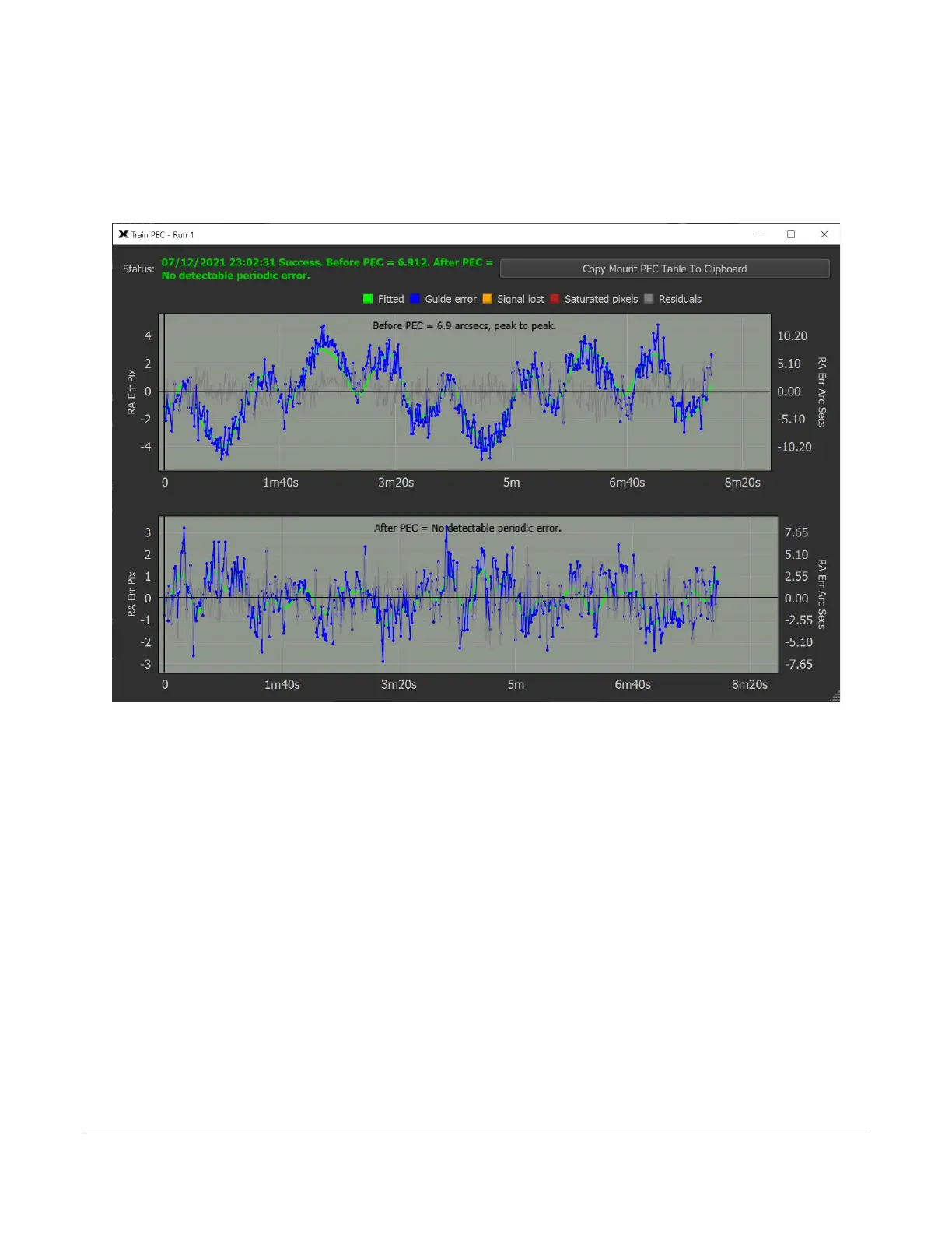 Paramount maximum specification, and the after PEC shows no detectable periodic error, PEC training was