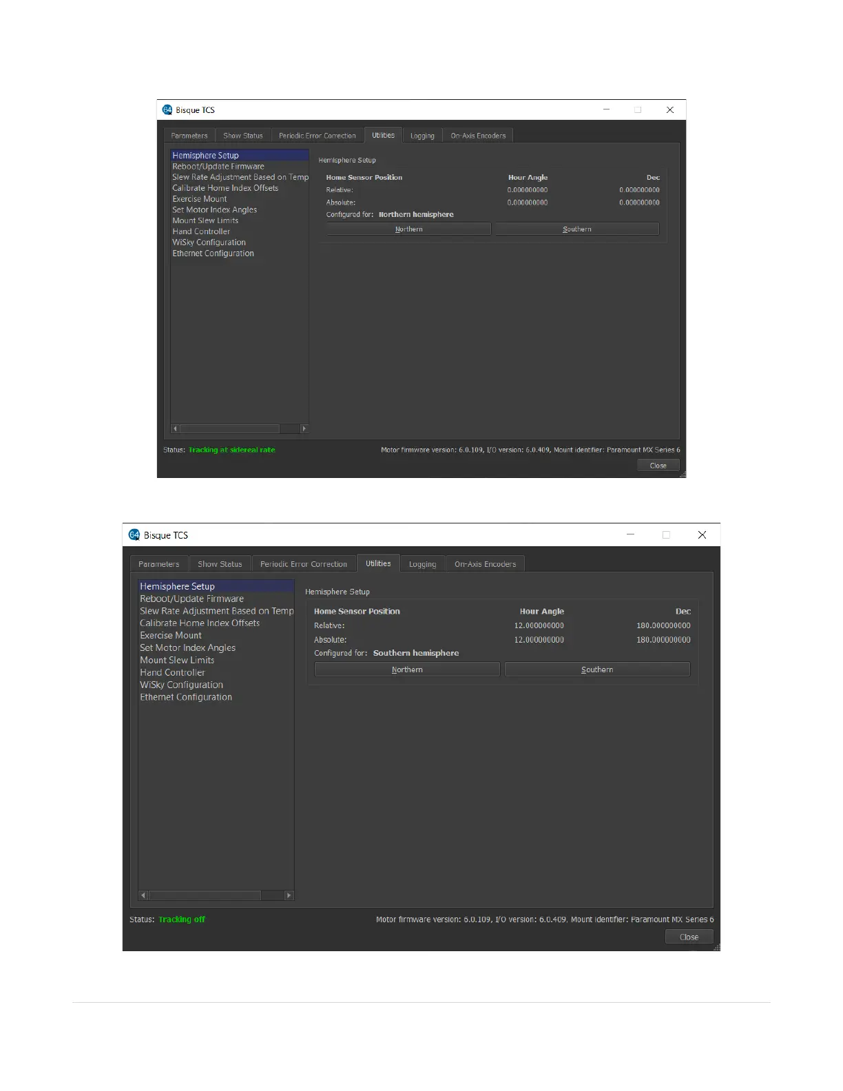 Figure 65: Example hemisphere settings for the southern hemisphere.