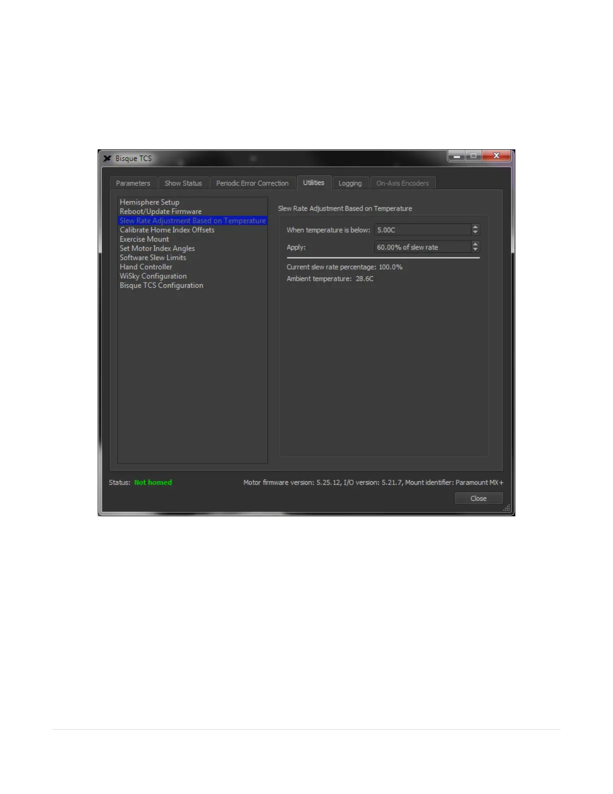 Figure 67: The Slew Rate Adjustment Based on Temperature settings on the Utilities tab.