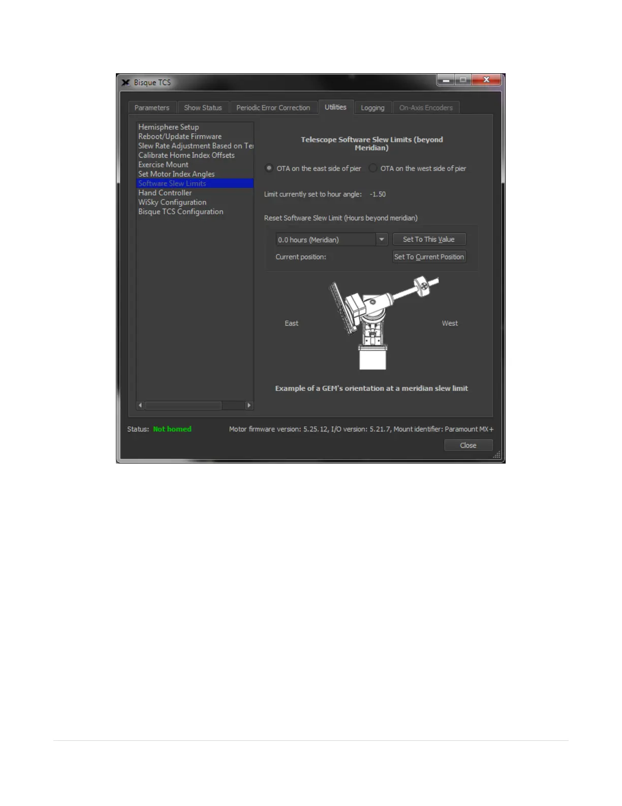 pier. Once the desired slew limit position is determined, click the Set to Current Position button to save this limit