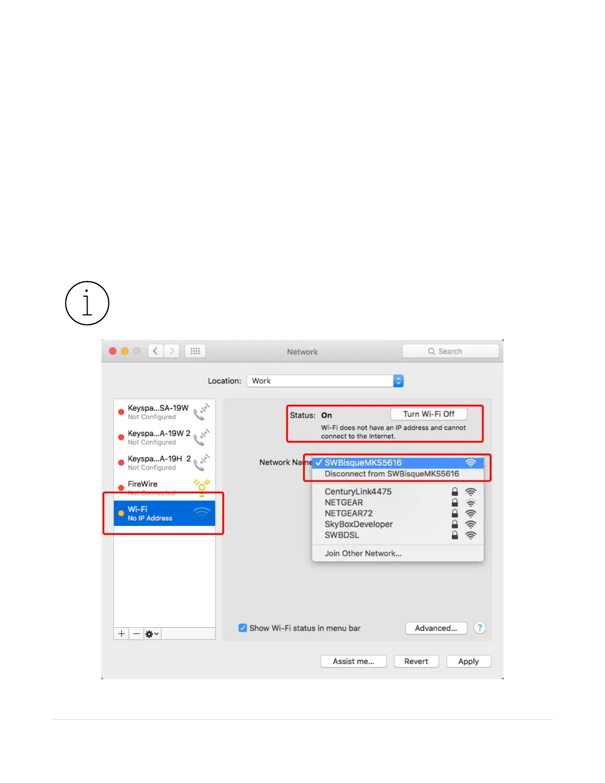 4. Highlight Wi-Fi from the networks listed on the left side of the Networks window.