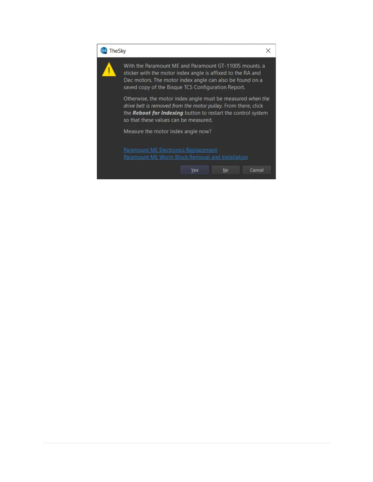 Figure 86: Prompt to measure the motor index angle.