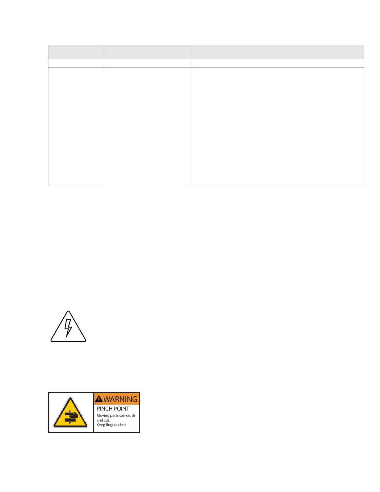 The three Status LEDs on the Electronics Box are illuminated based on the status of the control system.