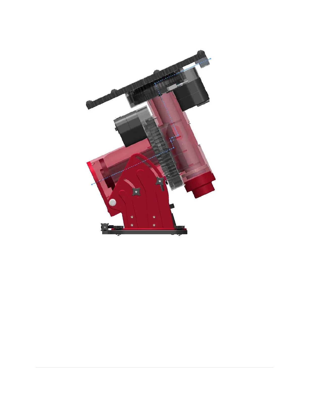 hand, or by a flexible wire grabber inserted into the cable conduit access hole on the declination axis