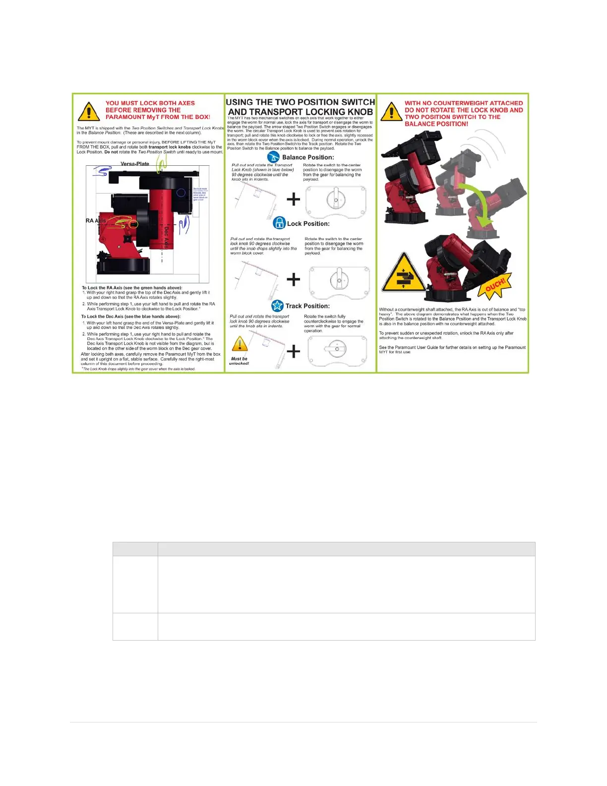 Figure 13: Please carefully read this flyer before unpacking the Paramount MYT.