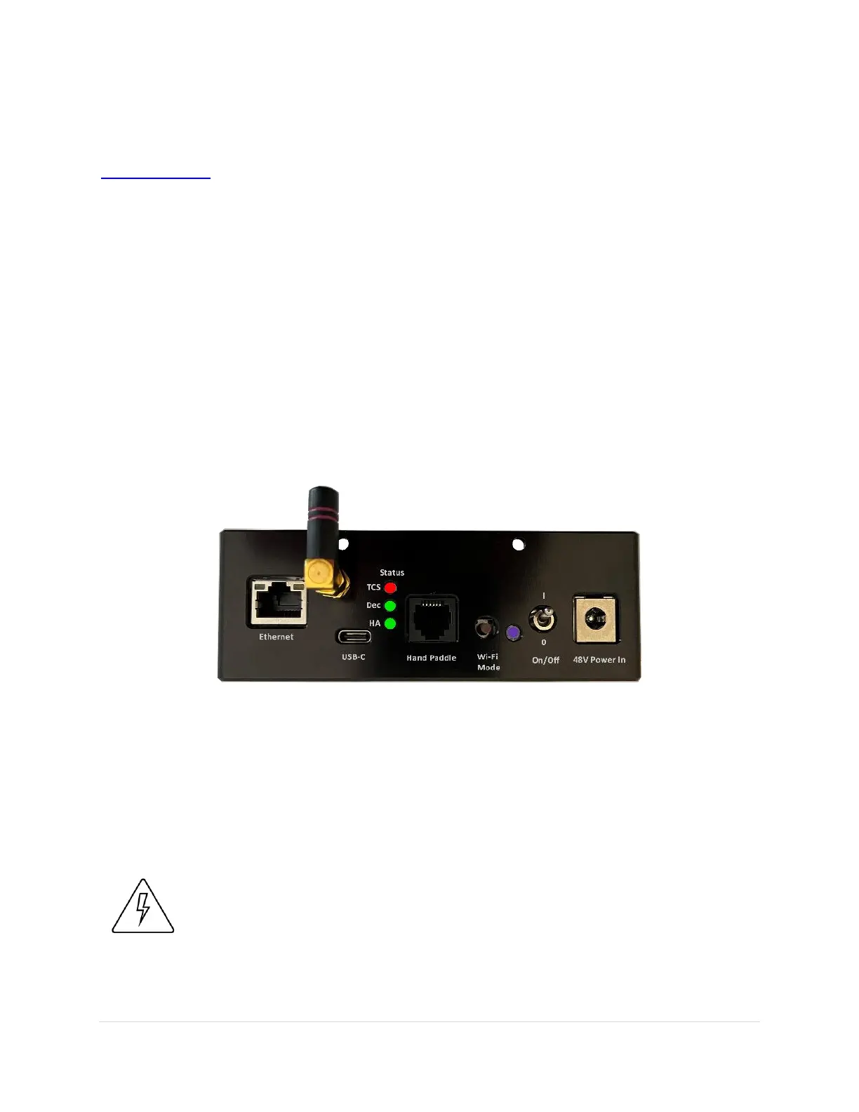 The Electronics Box includes the mount power switch, USB-C input, status lights, ports that can be used