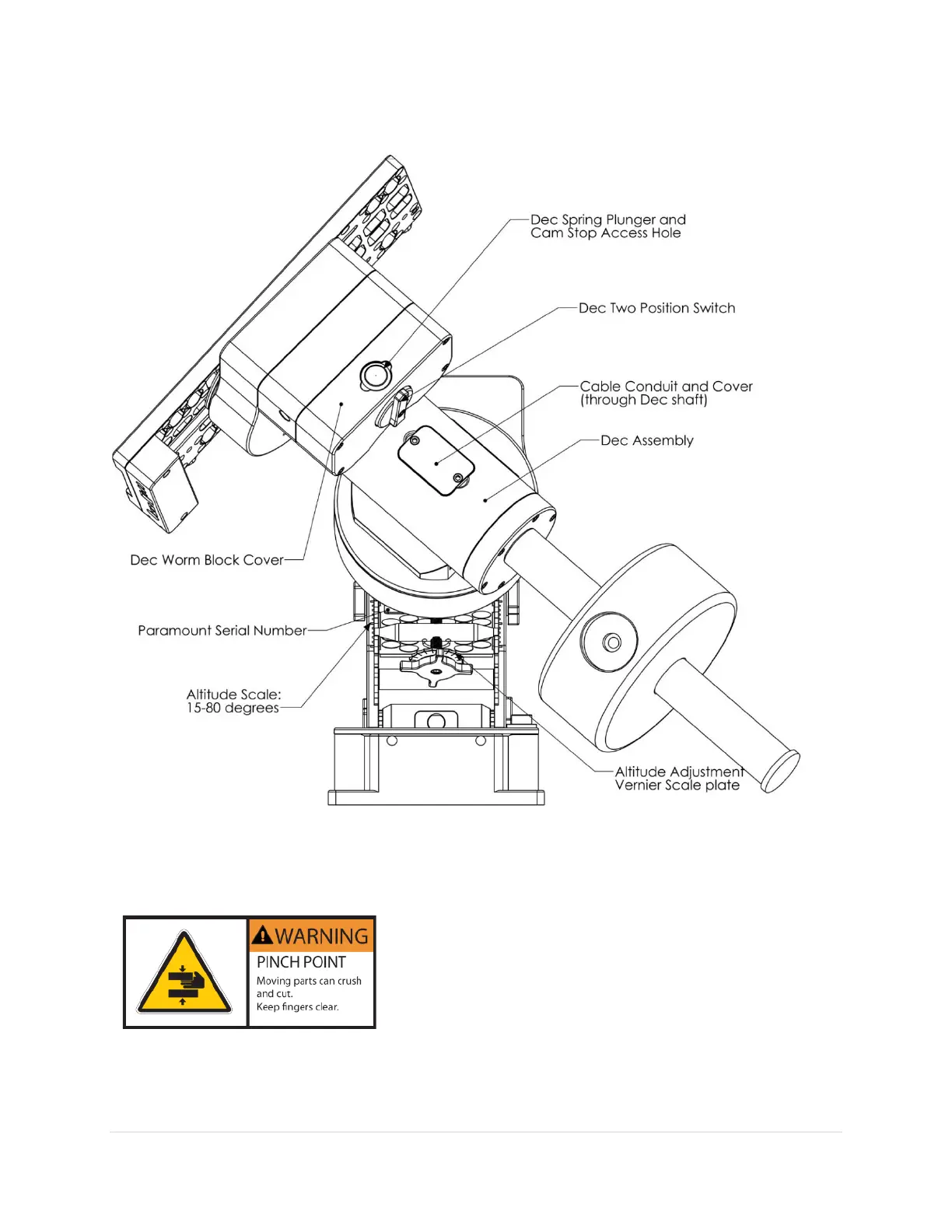 • When the declination axis’ two position switch is in the