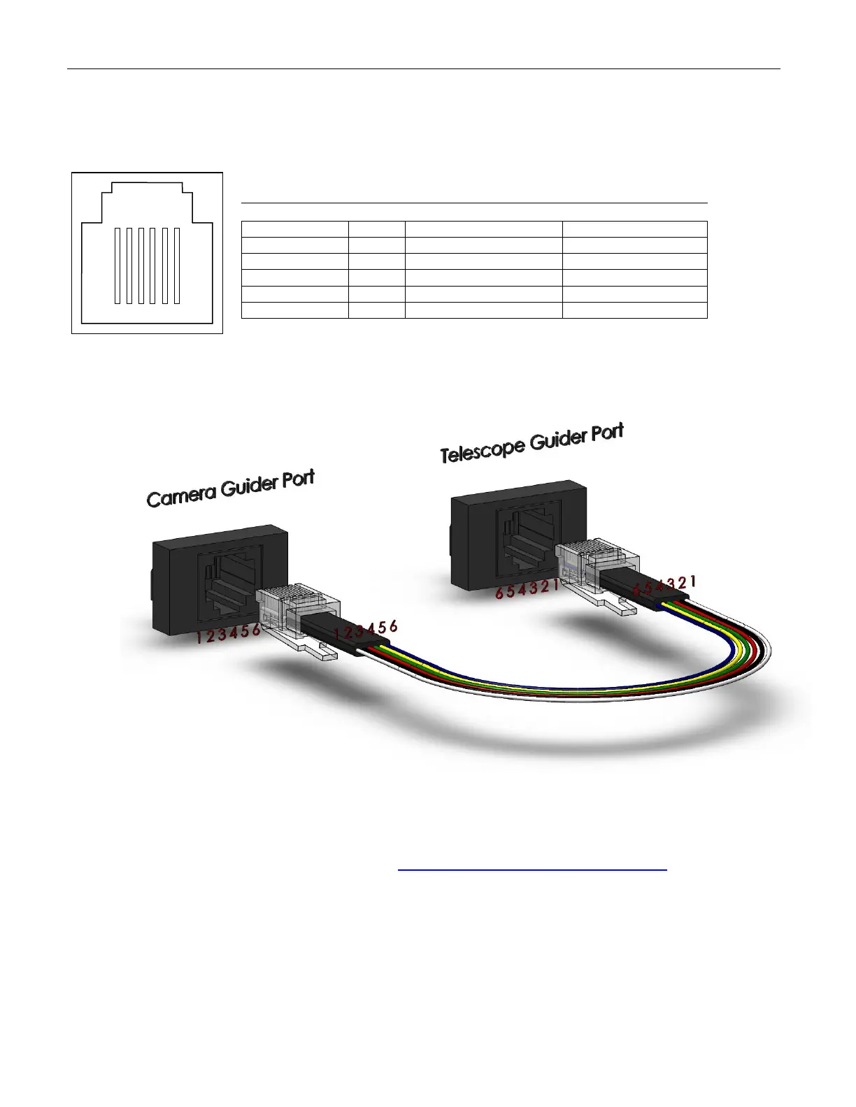 Figure 74: Diagram showing the pinouts for the guider cable and the camera and guider ports.
