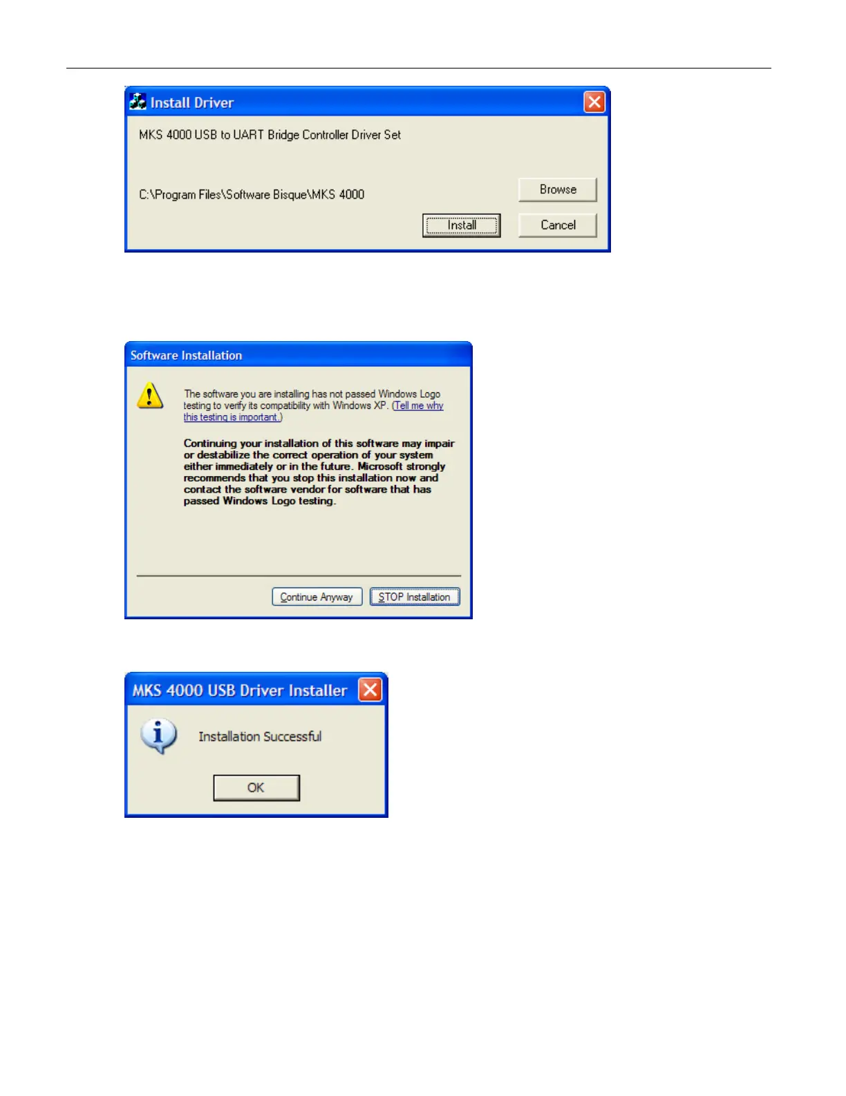 6. Click Install to install the MKS 4000 USB to UART Bridge Controller Driver Set.
