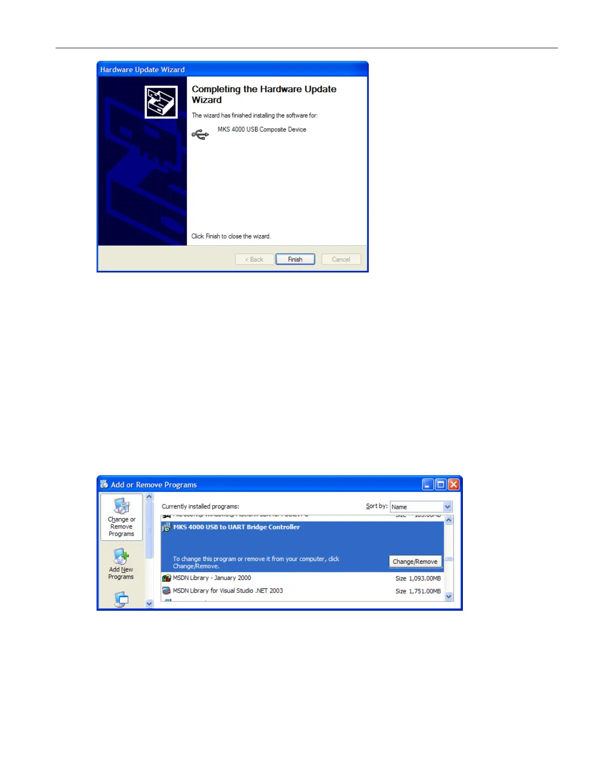 2. On the Add or Remove Programs window, select the MKS 4000 USB to UART