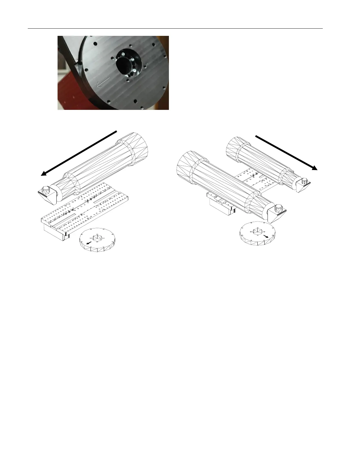 indicate the direction of incoming light. Note that the machined arrow on the declination hub points