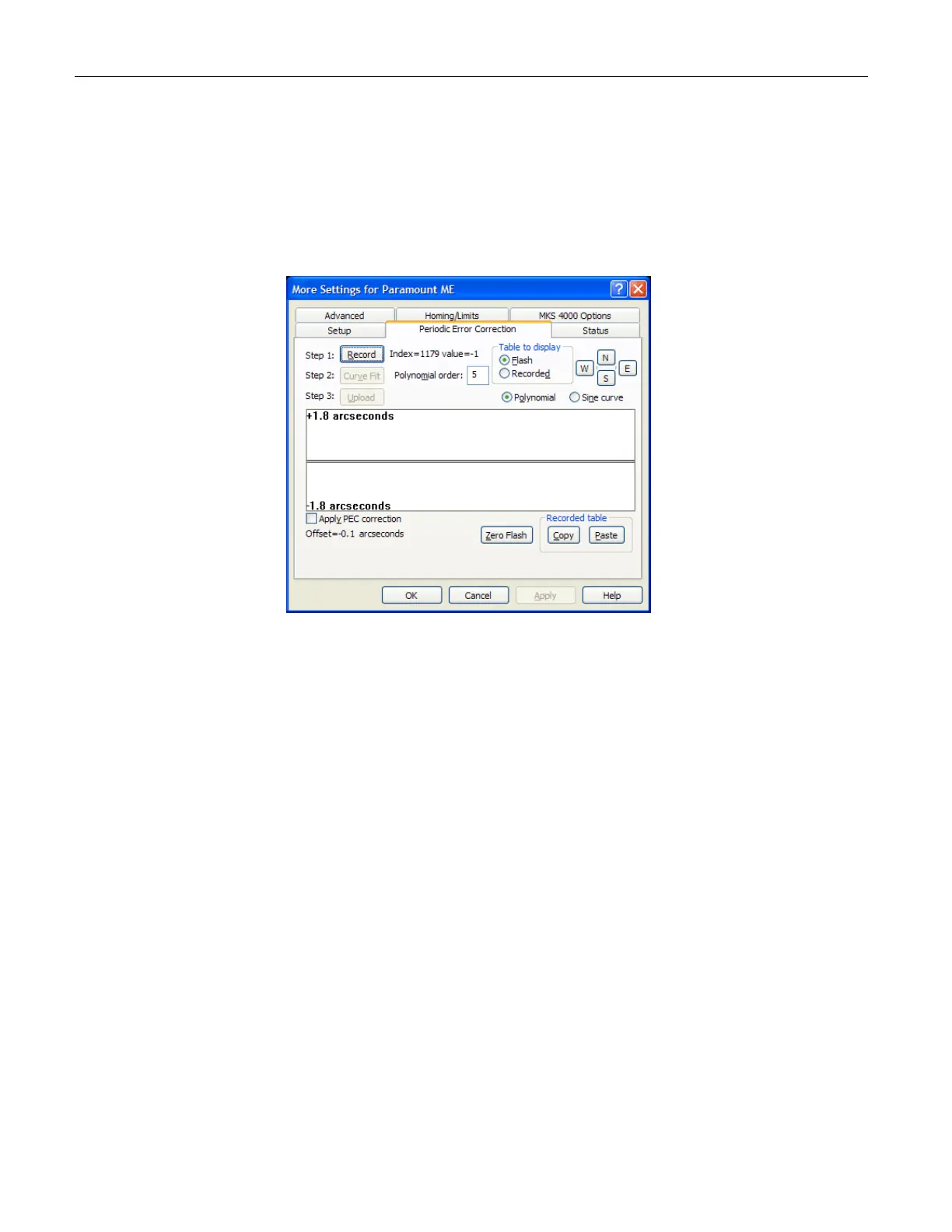 Figure 40: Periodic Error Correction tab on the More Settings Dialog Box (TheSky6 Professional