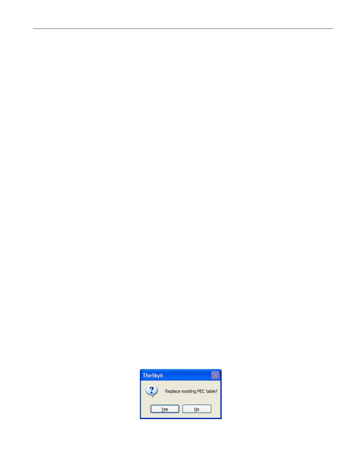 Figure 43: Replace existing PEC table dialog box (TheSky6 Professional Edition).