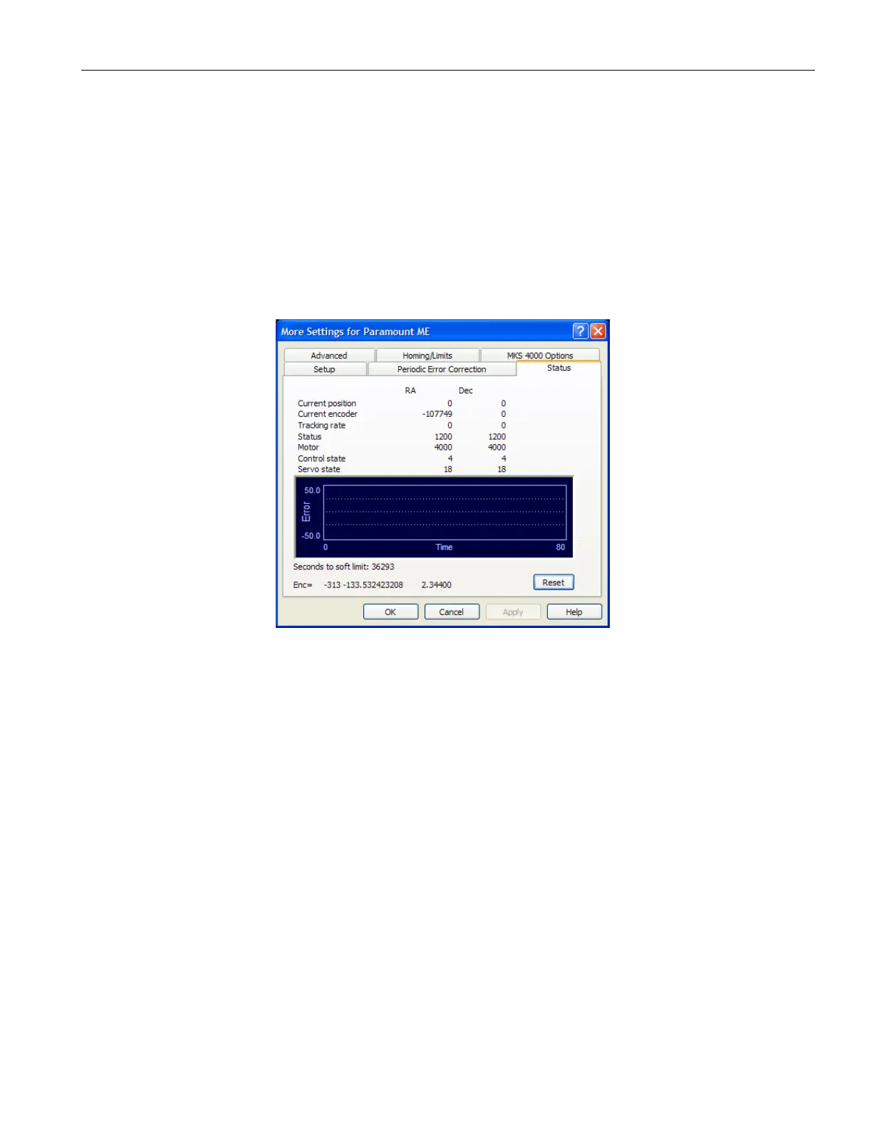 The graph near the bottom of the dialog is a very small sampling of the encoder positioning