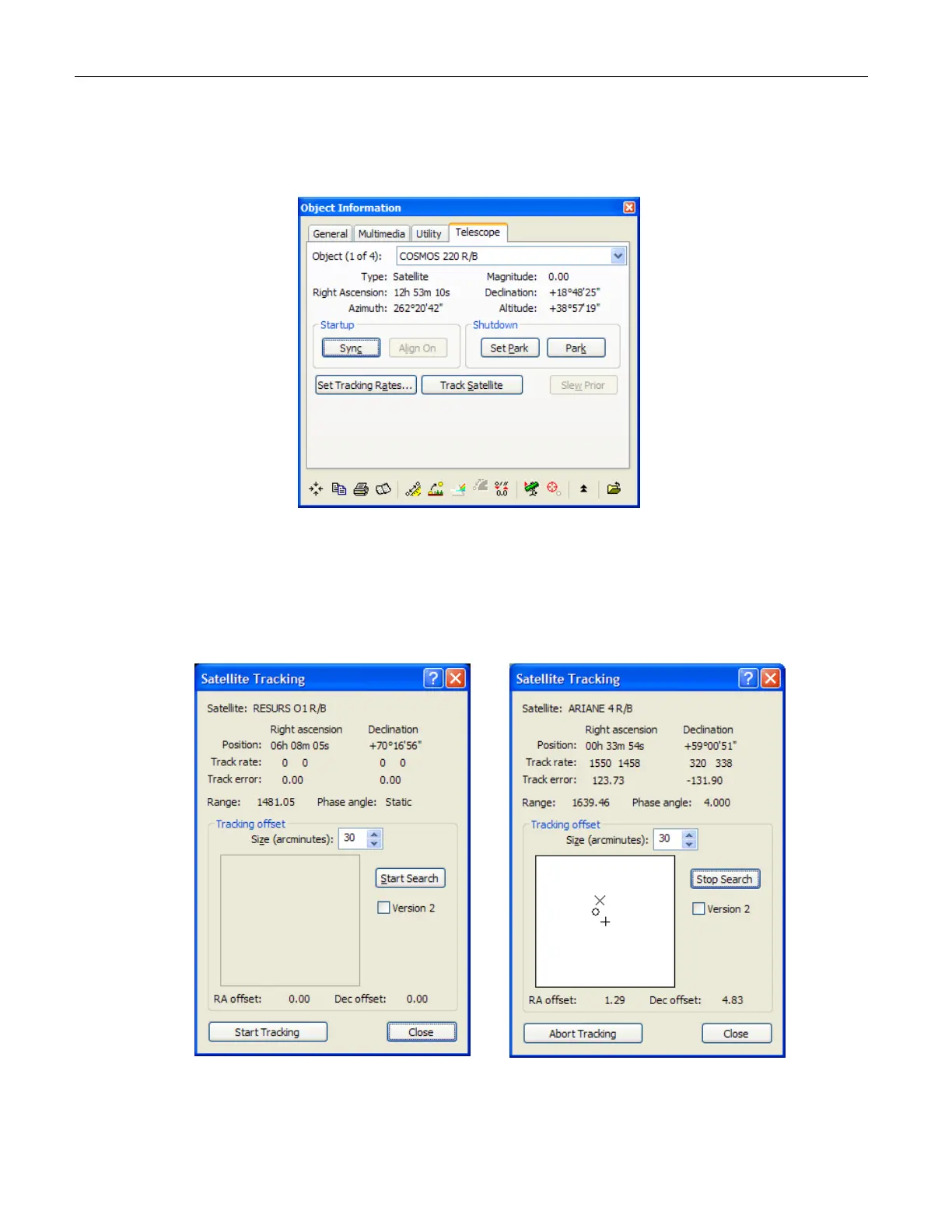 Information dialog box, click the Telescope tab, and then click Track Satellite to