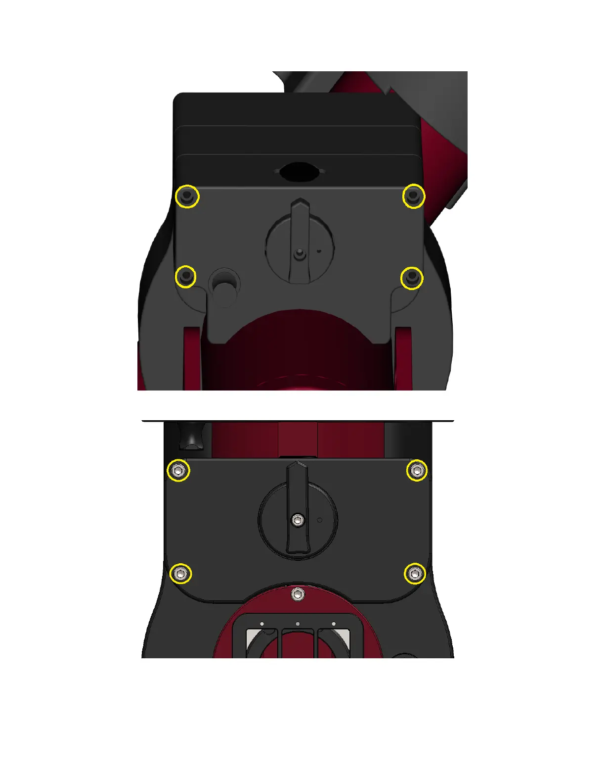 Figure 3: Four worm block cover screws to be removed for Paramount MX/MX+