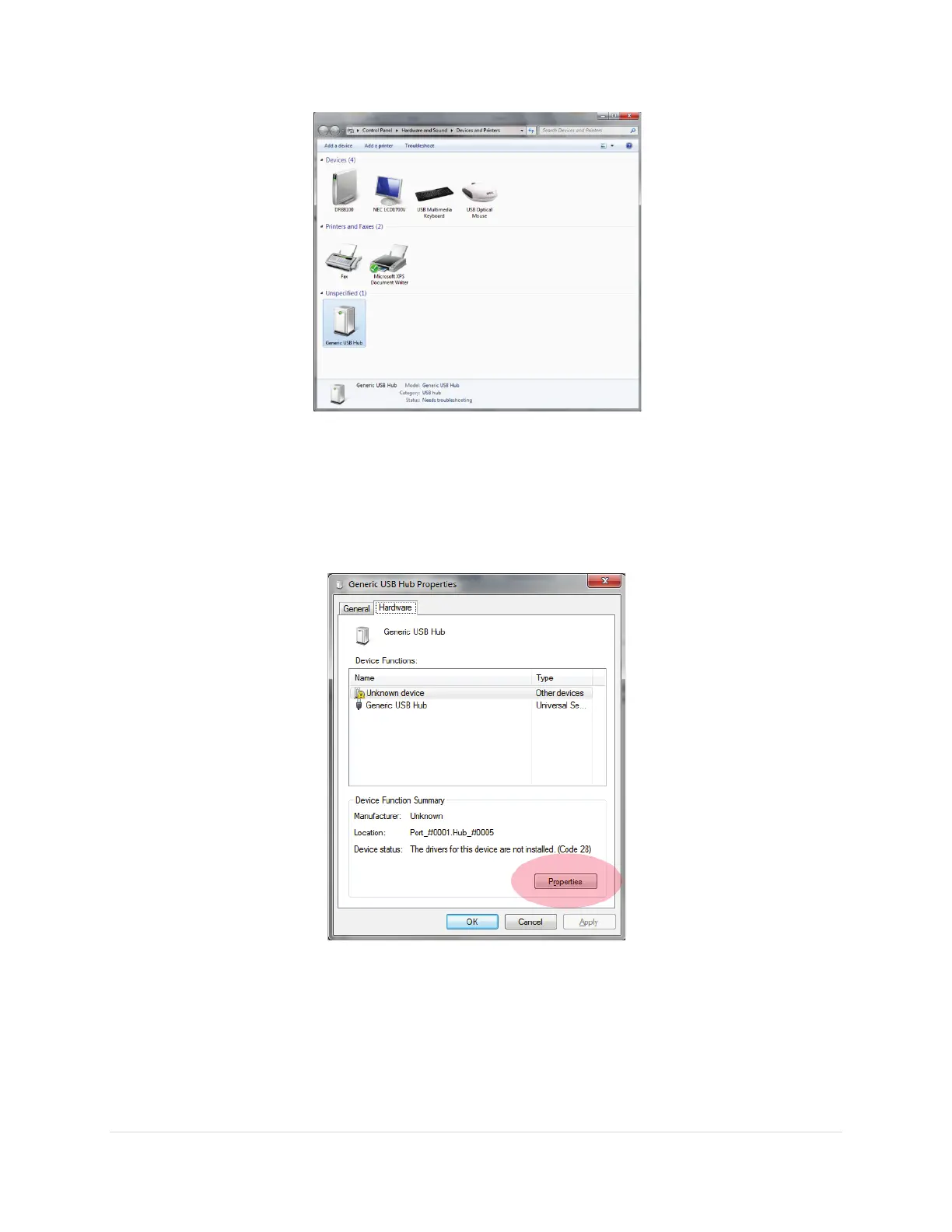 Figure 58: The Properties button on the Hardware tab of the Generic USB Hub Properties window.