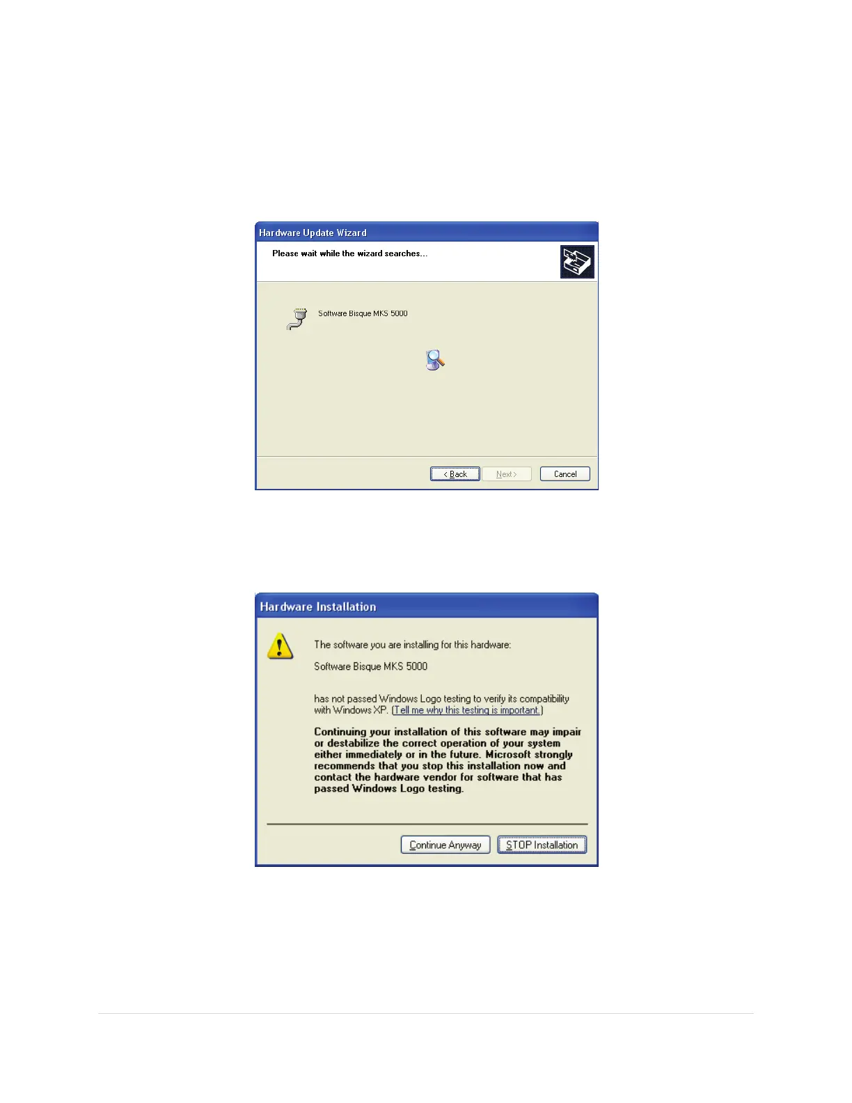Figure 68: Windows XP searching for the MKS 5000 driver.