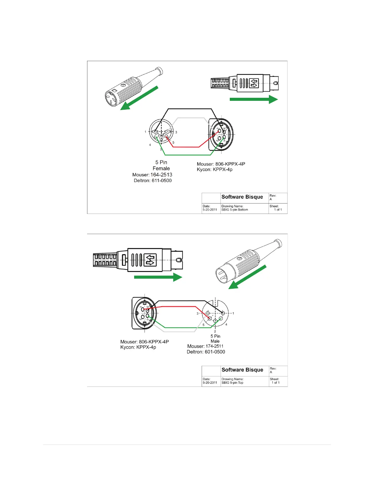 Figure 75: 5-pin SBIG ST-7 type power connectors on the 36-inch (91 cm) top cable.