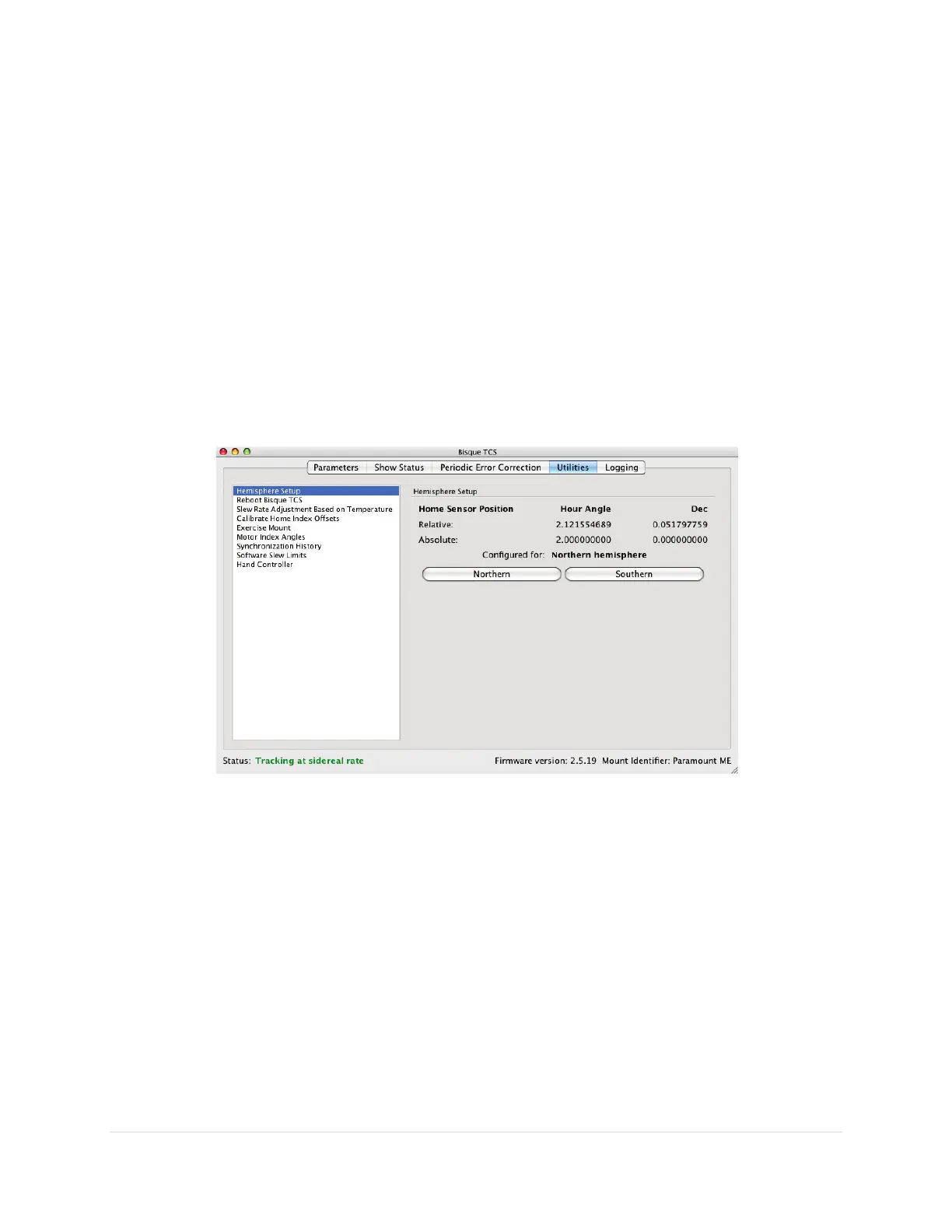 When the mount has been properly synchronized, TheSkyX Professional Edition’s relative position of the