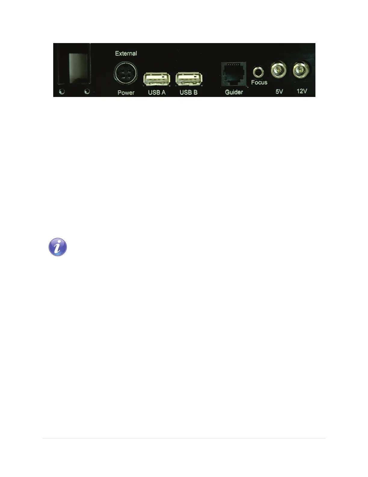 The Instrument Panel provides two USB 2.0 ports, a guider port, a focuser for pulse focuser control and