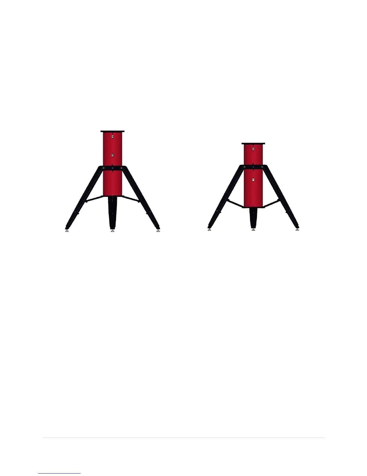 unleveled ground, or to increase the tripod’s maximum height. The end of each leg has a steel swivel