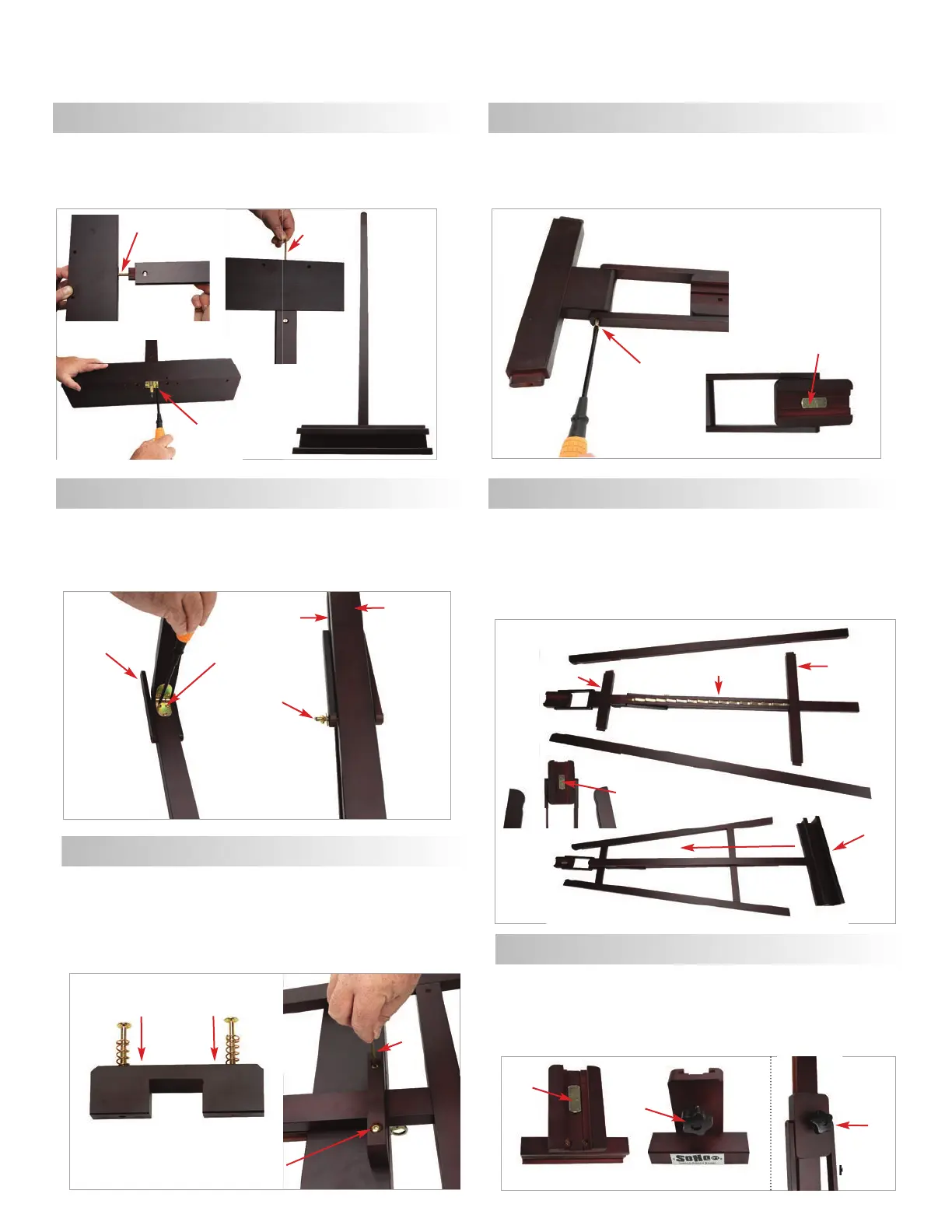 and barrel nuts (G). Lay the easel flat on it’s backside and slide the front center