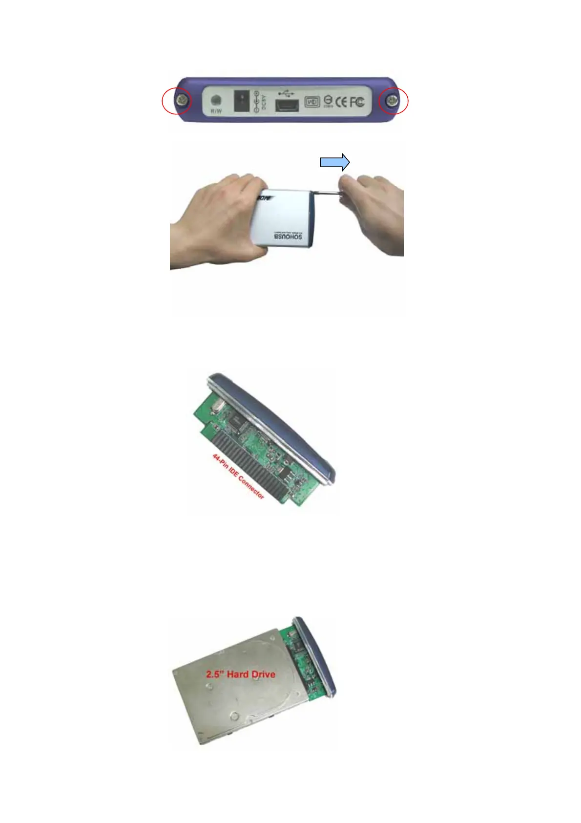 3. Connect 2.5” HDD into the 44-Pin connector on circuit Board.