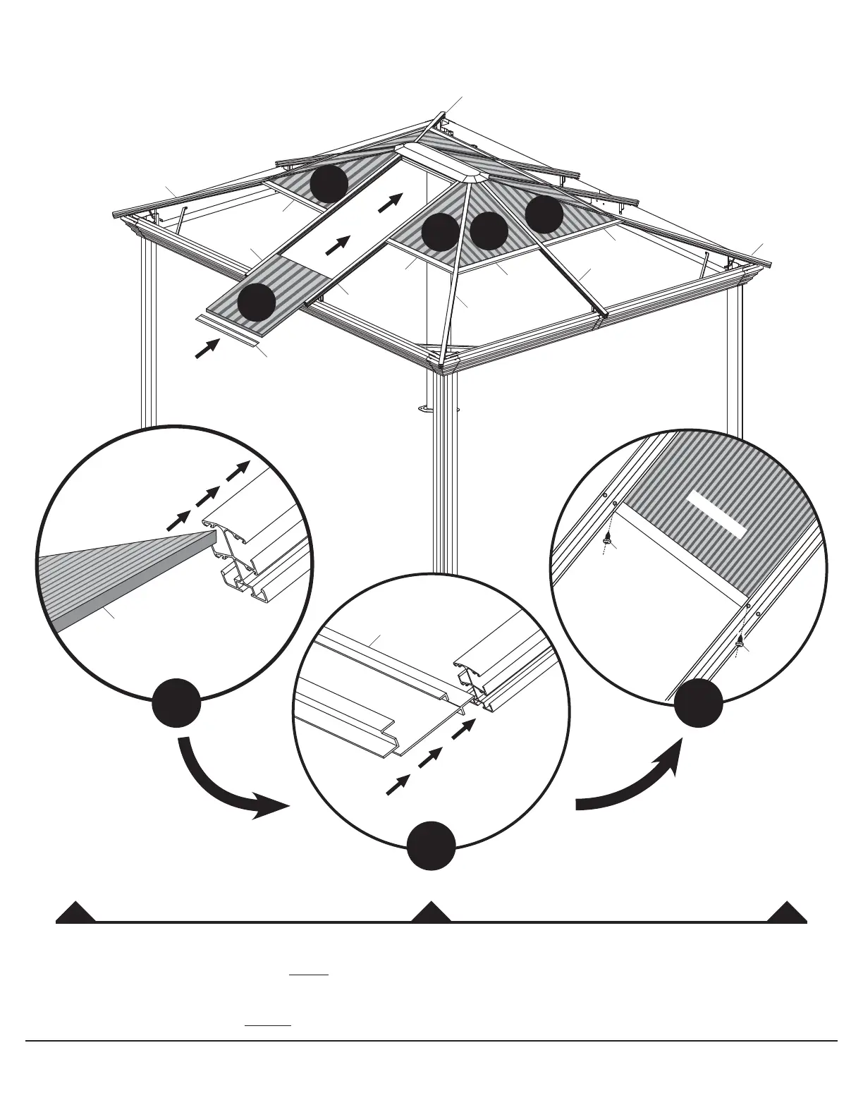 To help installing the roof panels and for your safety, complete 1+2+3 for each roof panel