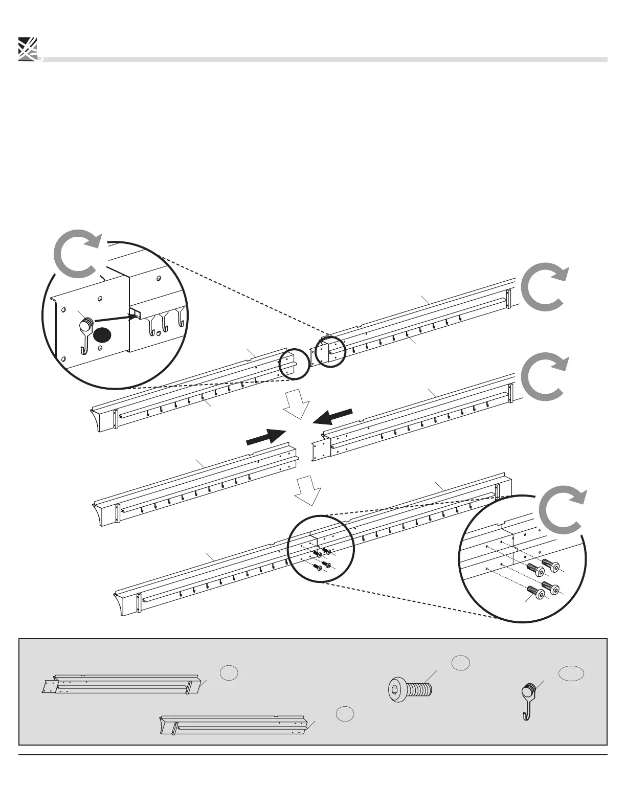 3.1 Insérer nine crochets (T) dans le premier rail de