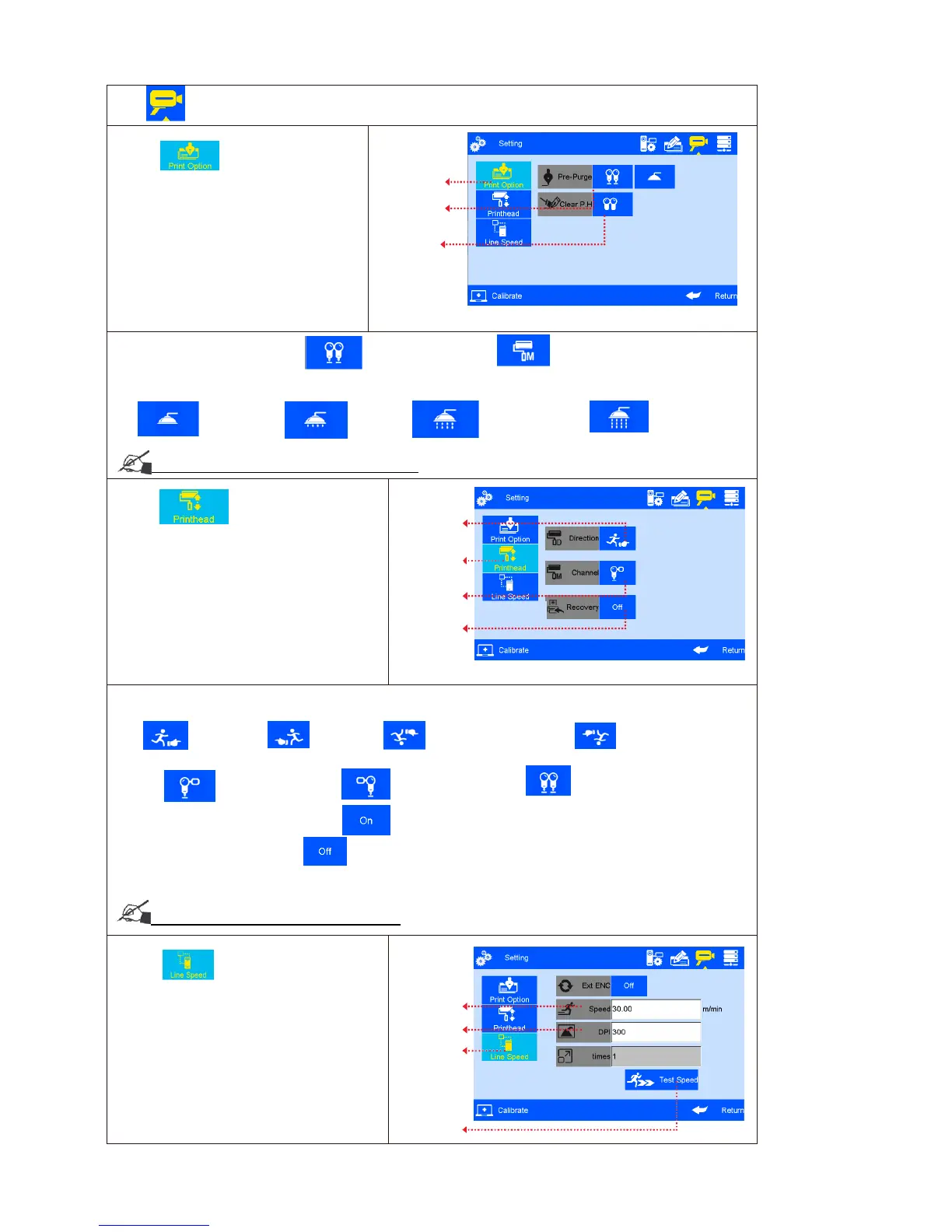 Note: 1) Pre-purge Mode: 2 modes: both right & left nozzles; the working nozzles only.