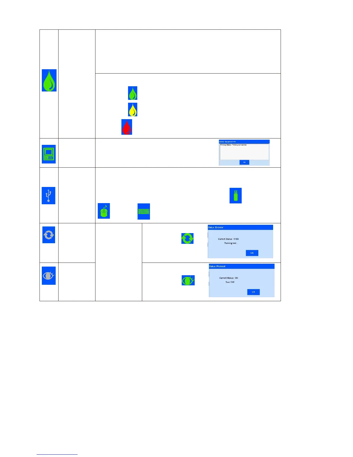 Ink status icons include:
