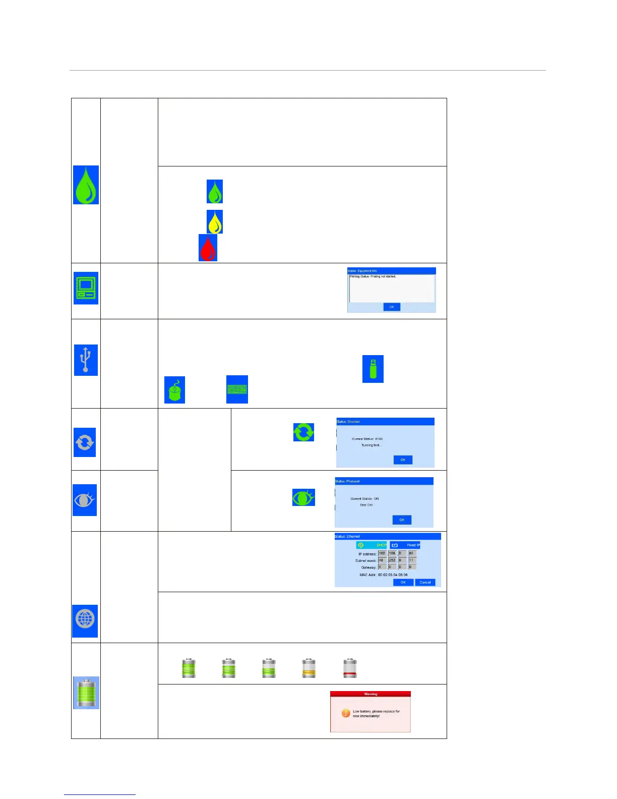 2) warning ( ): ink amount lower than 10%;