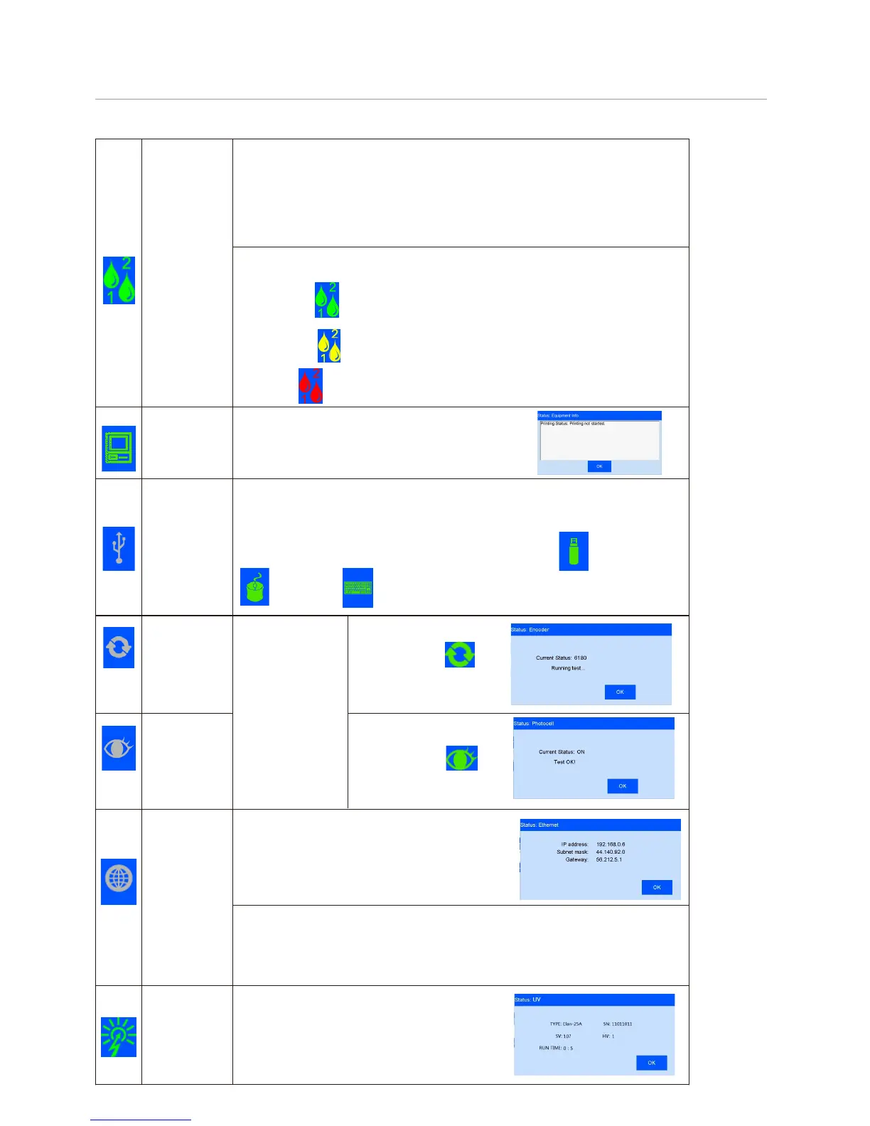 Ink status icons include: