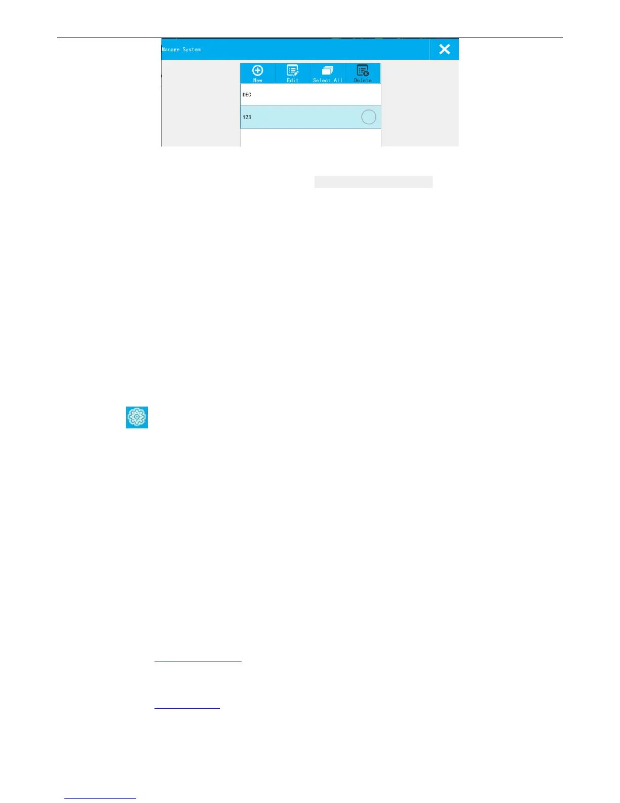 Delete: Select the newly systems can be deleted. The default system cannot be deleted