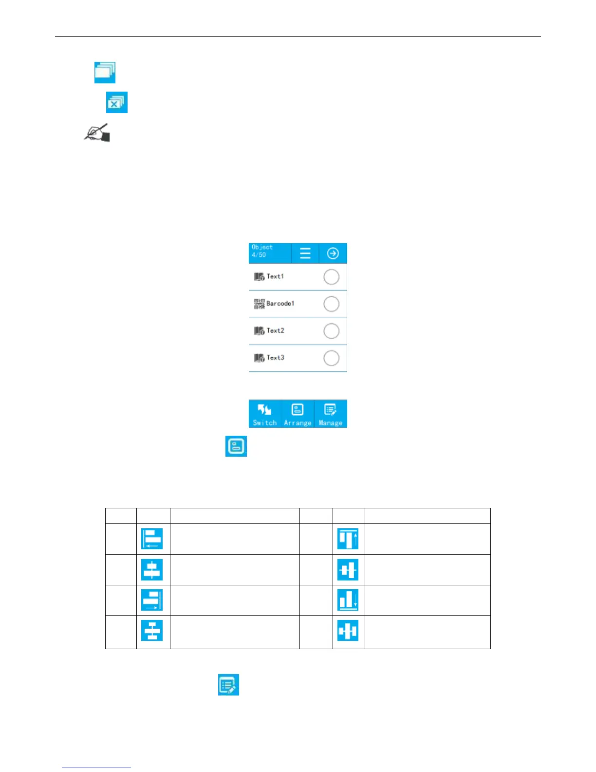 Object Arrangement: Click 【Arrange】, popup object alignment way, move up and down